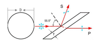 布儒斯特窗口片的基底不镀膜,通常用作偏振器。以布儒斯特角放置时,光束的P偏振分量将无损耗通过窗口片,而S偏振分量将被布鲁斯特窗口片反射。