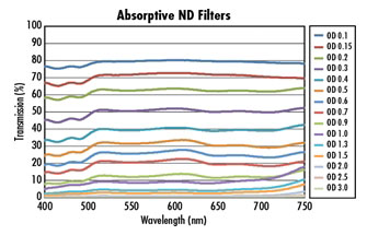相对于反射型中性滤光片,吸收型中性滤光片的损伤阀值低,在大功率的光系统设备中长时间使用的话,会发生发热现象,严重的甚至会损坏滤光片。