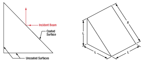 我们提供斜面镀膜的直角反射镜,也叫转向反射镜。反射镜的斜面镀宽带介质,金属或激光反射膜。直角反射镜可在90°下反射入射光线,主要用于多种光学系统。