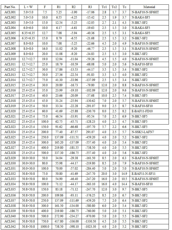 Achromatic Cylindrical Lenses are similar in design and function to a standard cylinder lens, but have the added benefit of reducing the spherical and chromatic aberration at the image plane. When used with a monochromatic light source (such as a laser diode), the achromatic cylinder lens will create a 50 – 90% smaller spot, depending on the numerical aperture of the lens. When used with a broadband light source, the lens will minimize chromatic aberration, yielding focused lines with less color separation, or will produce brilliant anamorphic images.
