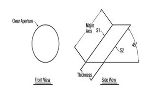 Elliptical Mirrors are plane mirrors with a coated elliptical face. When the mirror is rotated by 45° about the minor axis, the resulting clear aperture is circular.